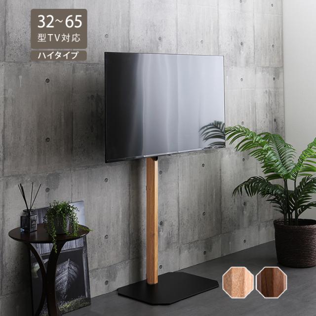 テレビスタンド ハイタイプ シャビーオーク色 全2色 木目模様が美しい八角柱 32〜65型TV対応 スイング角度調節 コード収納
