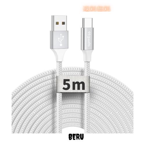 USB Type C ケーブル【5m 白】etguuds タイプc ケーブル 長い USB-C 充電ケーブル 高耐久ナイロン タブレット/スマートホン/防犯カメラ/