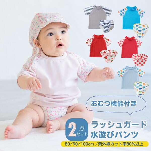 【2点セット】【半袖ラッシュガード+パンツ】ベビー 水着 ベビー 水着 男の子 ベビー 水着 女の子 ベビー ラッシュガード 水着 オムツ機能付き 水遊び用オムツ 水遊び用パンツ