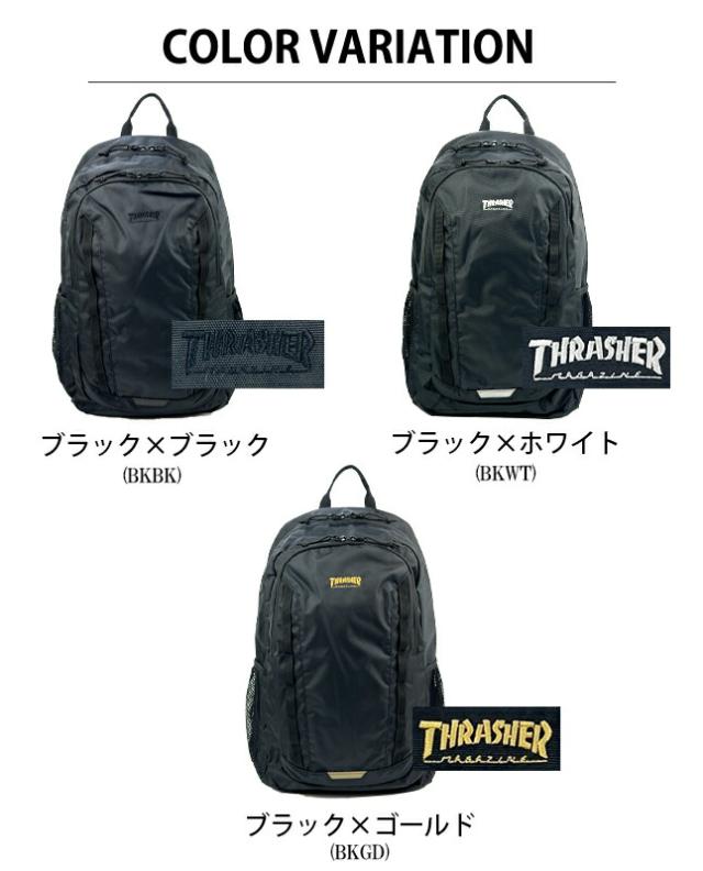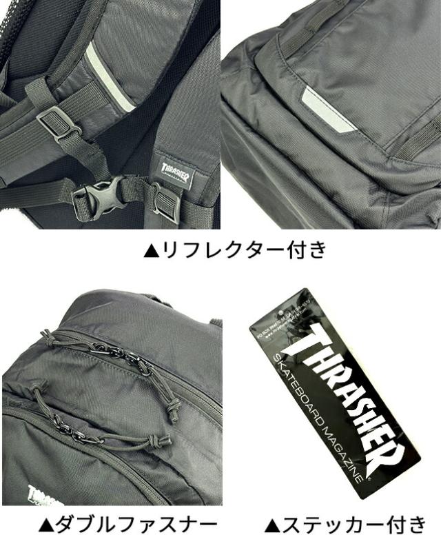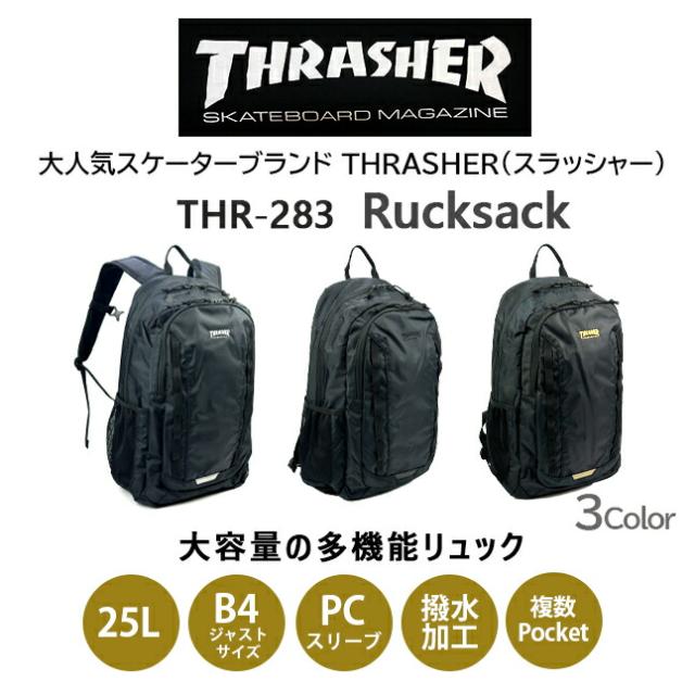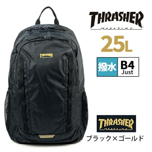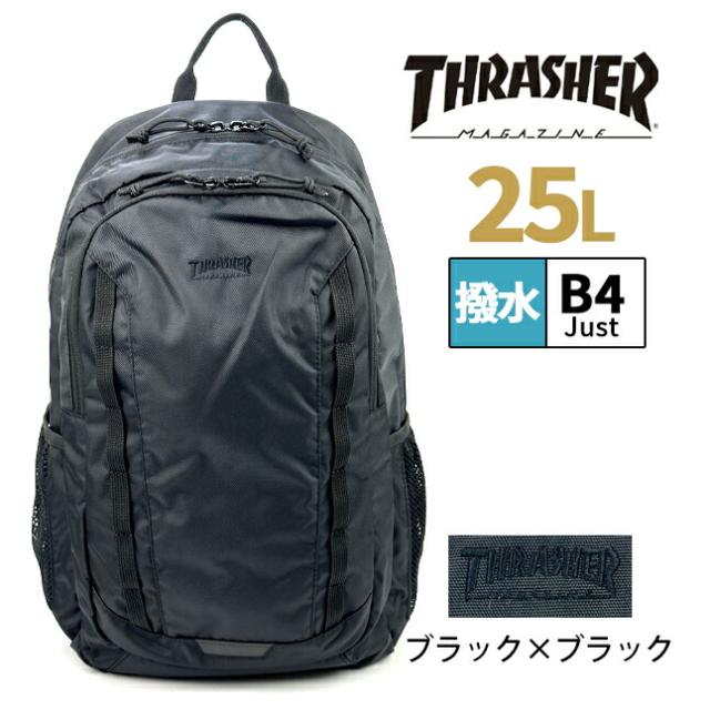 リュック 通学 大容量 男子 撥水 はっ水 thr-283 THRASHER スラッシャー リュックサック 25L A4 通学リュック 修学旅行 林間学校 部活 スポーツ ジム 合宿 大きめ おしゃれ かっこいい メンズ レディース 高校生 中学生 スケーターブランド ストリート系 シンプル ブラック