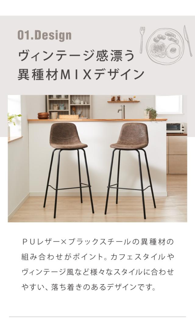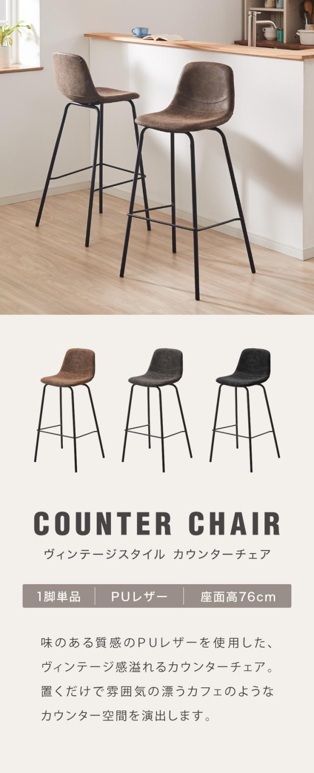 ヴィンテージ調ゆったりカウンターチェア/2脚セット