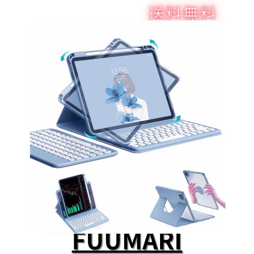 360°回転 iPad Air6 (M2)iPad Air11 2024 キーボードケース マグネットカバー 縦置き 取外し可能 磁気吸着 分離式 iPad Air4 Air5 /iPad Pro11 第4/3/2/1世代ケース カラーキーボード付き ペン収納 透明バックカバー ワイヤレス Bluetoothキーボード クリアカバー ,ブルー