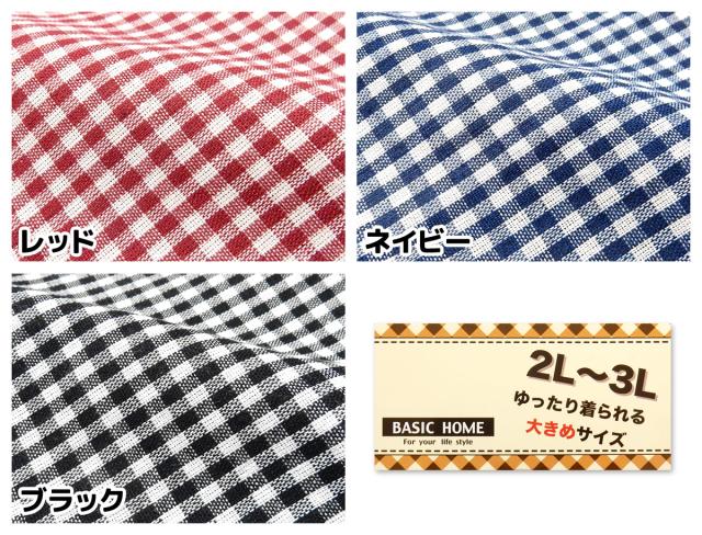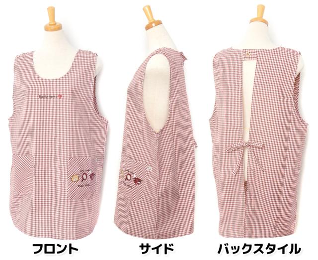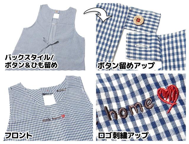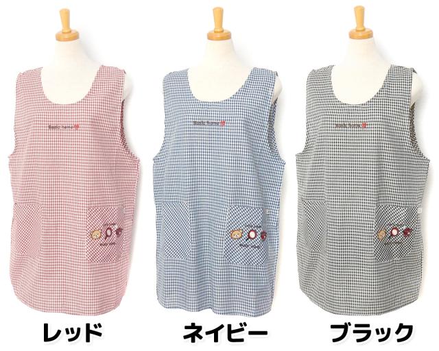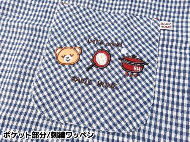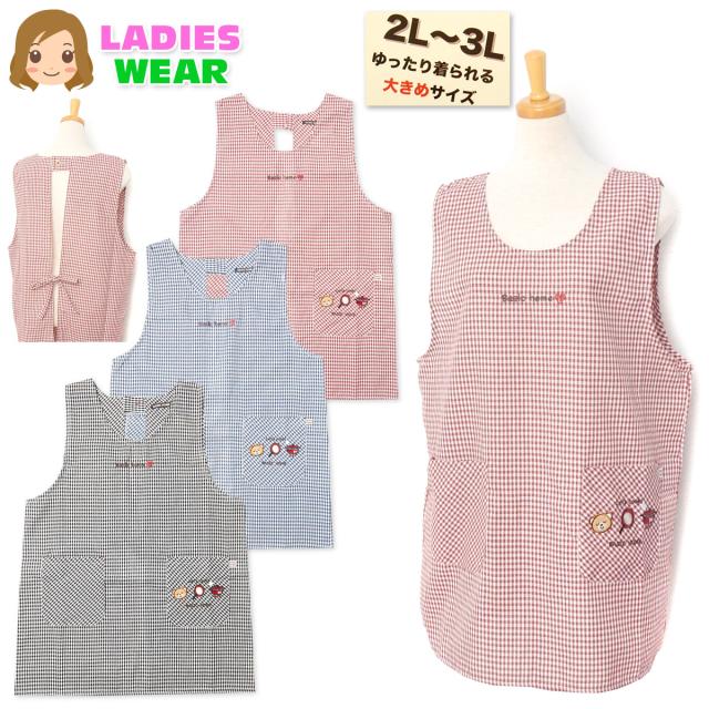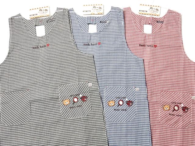 【送料無料】【大きいサイズ】婦人 レディース ラン型 エプロン 後ろボタン&ひも留め ギンガムチェック柄 くま刺繍ワッペン 2L-3L sl-0491【メール便対応】