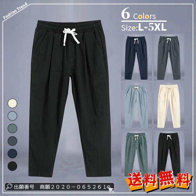 最安挑戦 冬新作 送料無料 新作 メンズ パンツ メンズ サルエルパンツ 春秋 リネンパンツ 九分丈 ゆったり ズボン 大きいサイズ 綿麻 クロップドパンツ ウェストゴム ストレート ワイドパンツ 日系