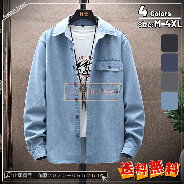 最安挑戦 冬新作 送料無料 新作 メンズ シャツ メンズ 長袖 デニムシャツ 春秋 開襟シャツ ワークウェア カジュアル シンプル デニムジャケット 無地 ワークシャツ ミリタリー スリム ワイルドシャツウォッシュドジャケット