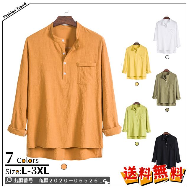 最安挑戦 冬新作 送料無料 新作 トップス メンズ 綿麻リネンシャツ ワイシャツ 長袖シャツ スリム おしゃれ 長袖トップス 胸ポケット 開襟 カジュアルシャツ 大きいサイズ 爽やか サマー