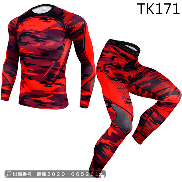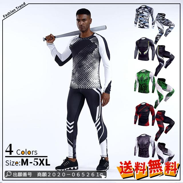最安挑戦 春新作 送料無料 新作 メンズ運動服 上下セット ランニングフィットネス服 メンズ 2点セット 加圧 長袖 スポーツウェア コンプレッションウェア セットアップ 迷彩 速乾性 大きいサイズ