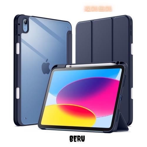 JEDirect iPad 10 ケース(10.9インチ、2022モデル、第10世代用) Pencil収納可能 透明バックカバー 薄型 スタンド 衝撃吸収 タブレット