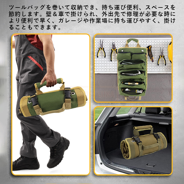 最安挑戦 冬新作 送料無料 新作 ツールバッグ 工具バッグ 工具袋 道具袋 ロール ツールバッグ 壁掛け式 多機能 オックスフォード 簡単整理 着脱式デザイン 大容量 ポケット 防水 大工用 バイク用 修理 鉄工 電工 持ち運び便利