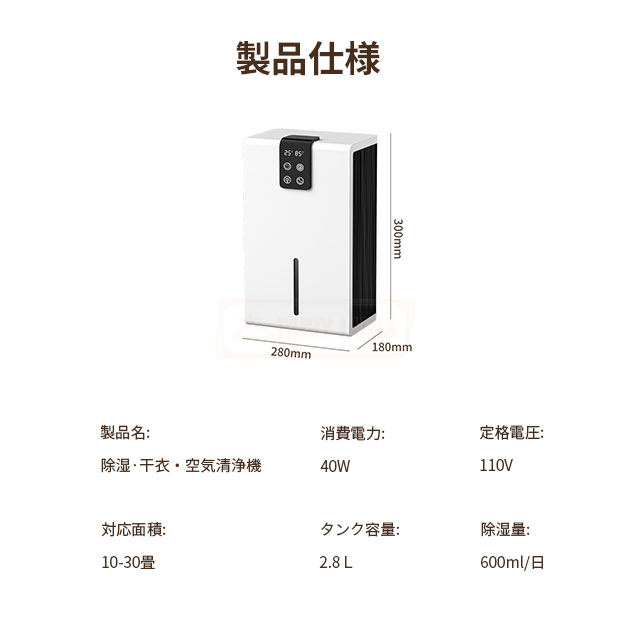 | 【最大30畳対応 強力除湿・加湿】 | ◆ペルチェ式除湿機で、ジメジメした空気を吸い込み、結露させることで余分の湿気を取り除き、さらさら快適空間に。600ML/日のハイパワーでスピード除湿、湿気によるカビ・結露・異臭などいろんな悩みを一気に解決。 |