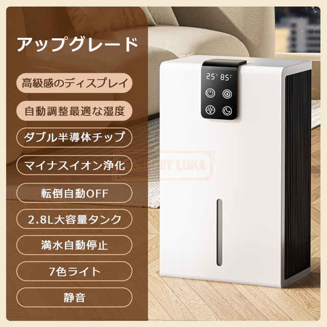- 湿度や温度の表示が写真ではあるのに、届いたものにはなかった。電源とライトボタンのみ。おやすみモードはどこいったん?コンセントも短すぎ。到着も11日たって届いた。残念すぎる。