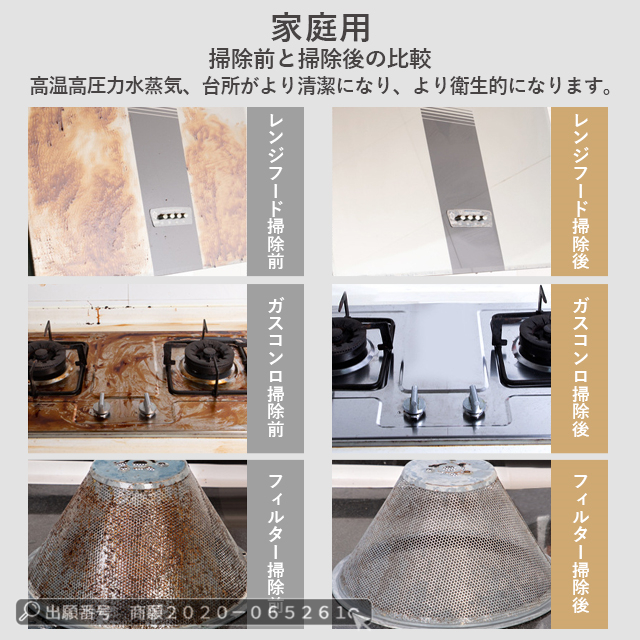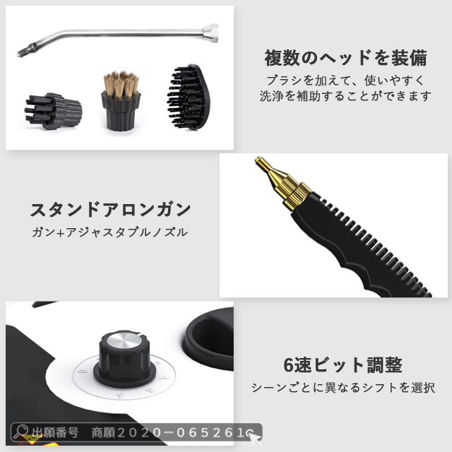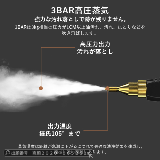 | 【高温高圧】 | ◆15秒以内に229°F/105°Cの高温と3BARの高圧スチームを生成でき、強力な洗浄能力があり、頑固な油汚れ、ほこり、グラウトなどを効果的に除去できます。 |
