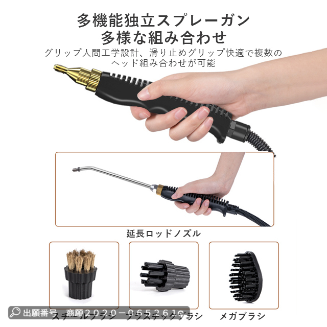 | 【ポータブルスチームクリーナー】 | ◆2.5mの電源コードと2.2mのスチームパイプで、隅々まで掃除できます。スプレーガンのデザイン、軽くて扱いやすく、負荷圧力なし。 |