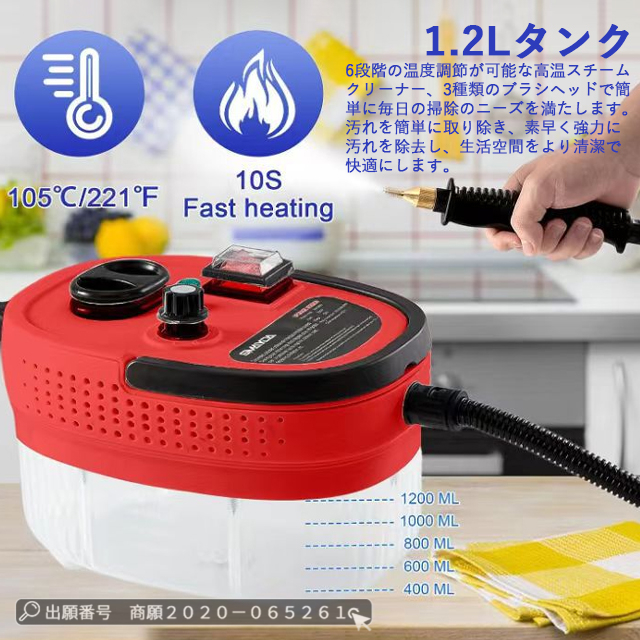 | 【2500Wハイパワー】 | ◆ 10秒間の高速スチーム、50-80ml/min、強力な洗浄能力、油、ほこり、グラウトなどを効果的に除去できます。キッチン、バスルーム、リビングルーム、中庭などの場所に適しています。 |
