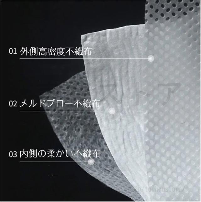 高価なメルトブローン不織布を採用した3層構造の家庭用使い捨てマスク。
