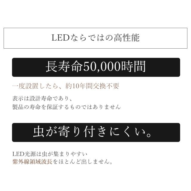 - 高効率LED光源を使用しており、消費電力が少なく、長寿命で、電気代を大幅に削減します。また、頻繁な電球交換の手間も省けます。