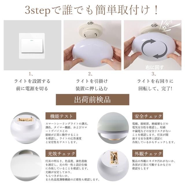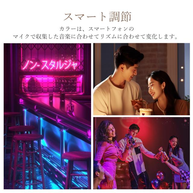 スマートフォンのアプリや音声アシスタントを使って、照明の明るさや色温度(暖色光、冷色光)を調整できます。読書、リラックス、睡眠など、さまざまなシーンに適しています。・