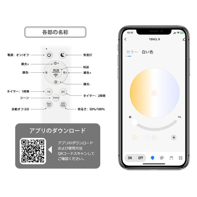 - リモコンとアプリ対応で、スマホやリモコンから簡単に明るさや色温度を調節でき、遠隔操作が可能です。
