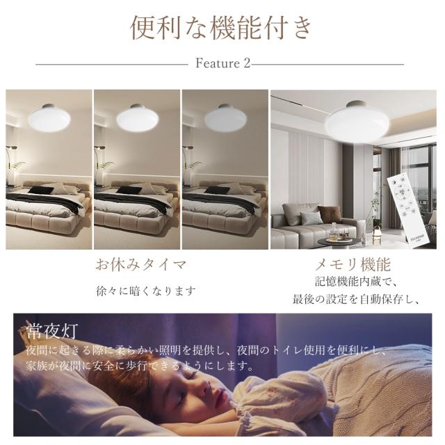 - 読書モード、ナイトライトモード、リラックスモードなど、複数の照明モードがプリセットされており、ワンタッチで異なる生活シーンに対応できます。
