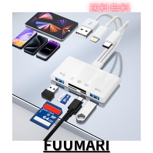 【2024年新登場 カードリーダー】iphone SDカードリーダー 5in3 Lightning/Type C/USB3.0 - USB/SD/TF 変換アダプタ 設定不要 写真/ビデ