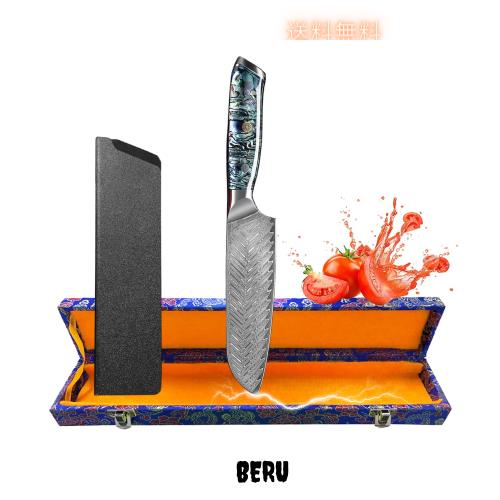 ◆商品名:Utaki 三徳包丁 67層ダマスカス包丁 【Undine・ウンディーネ?】 万能包丁 刃渡り167 目を引くアワビ貝+樹脂のハンドル
