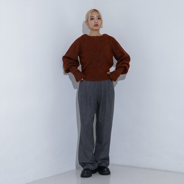 短めの着丈とボリューム袖のバランスが良く、ボリュームのあるボトムとのバランスも◎
