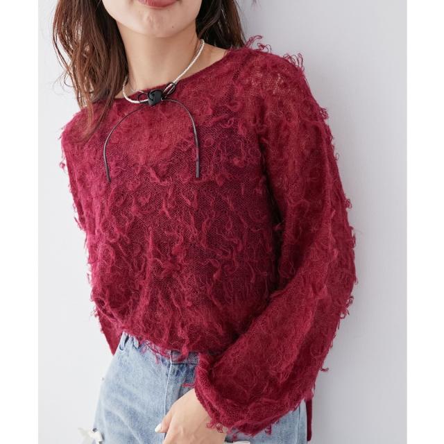 ふわっとやわらかな糸を使用し、程よくシアーに仕上げた、今シーズン注目のフリンジニット。