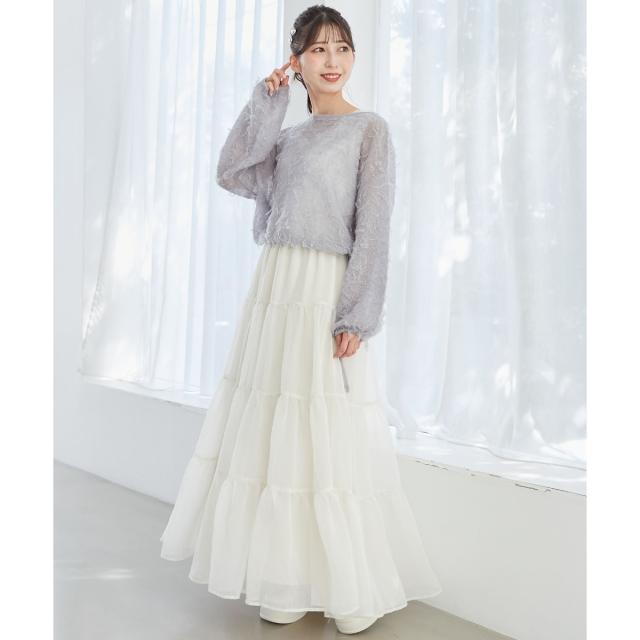ぽわっと丸みのある袖や、デコルテをキレイに魅せる襟ぐりのヌケ感などで甘さをプラスし、
