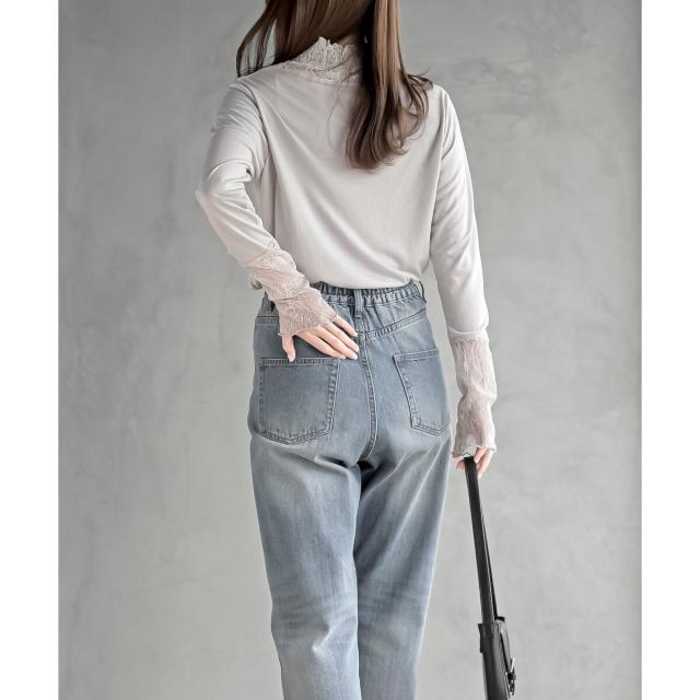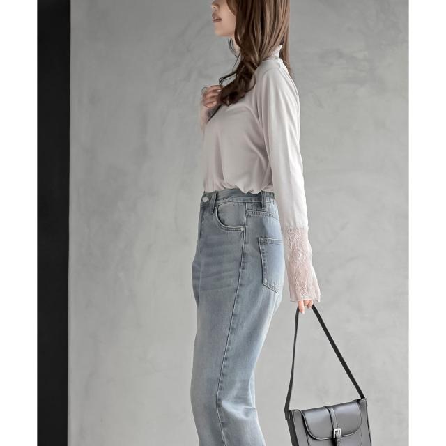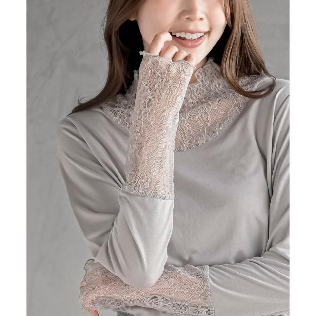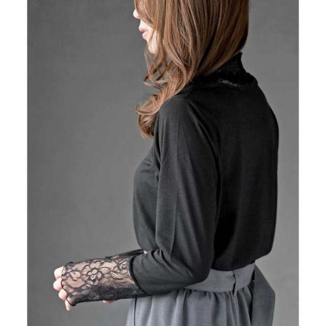 襟元や手元からレースをチラ見せする上品な重ね着が楽しめます。