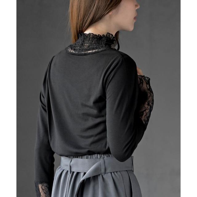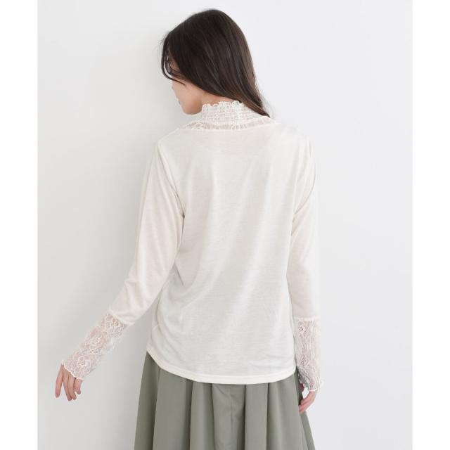 ギャザーレースネックカットソー