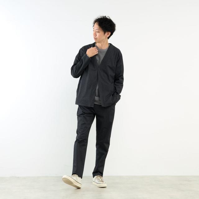 ヒップ、わたり部分にややゆとりを持たせ裾に向けてテーパードを利かせたリラックステーパードシルエットです。