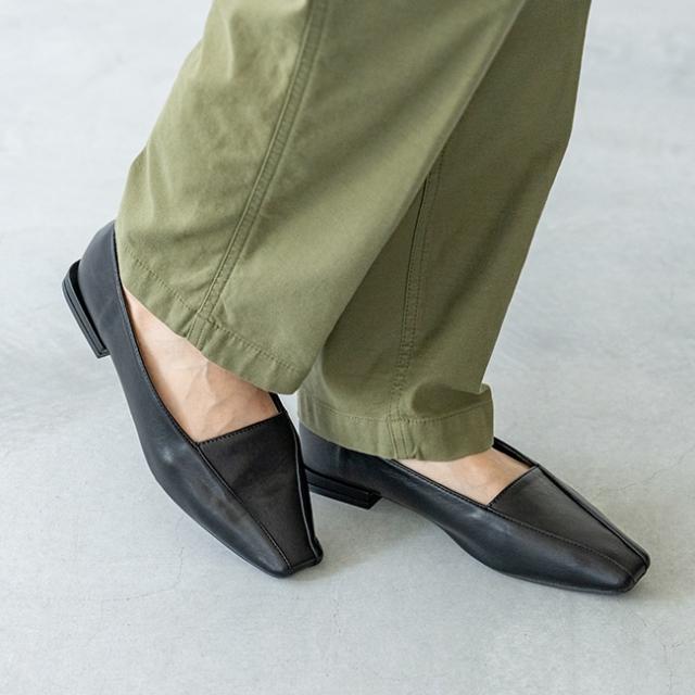 オーバーヒール 甲切り替え ローヒール パンプス [ menue メヌエ ]