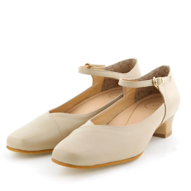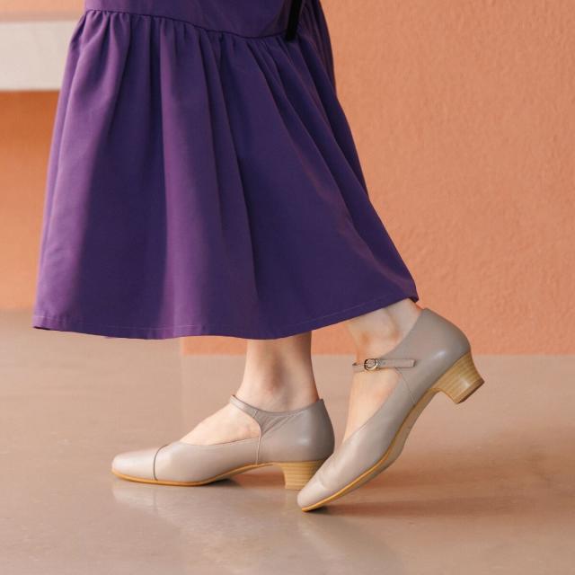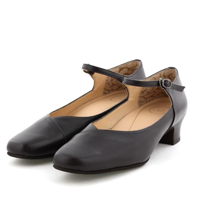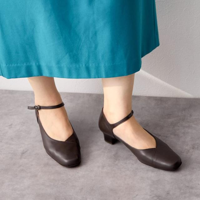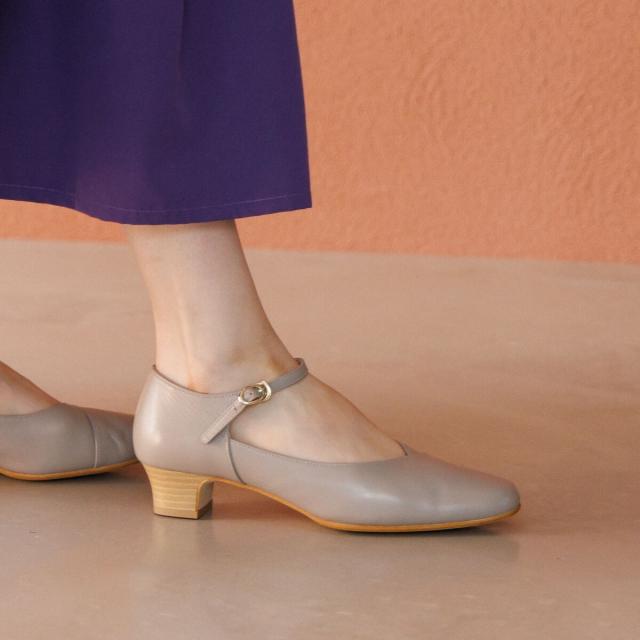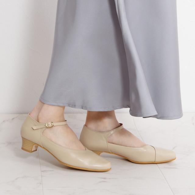 ボロネーゼ製法によりソールのカエリがよく、程よく足にフィットします。ペタンコすぎないヒールの高さとストラップ付きで、普段パンプスを履き慣れない方にもおすすめの一足。