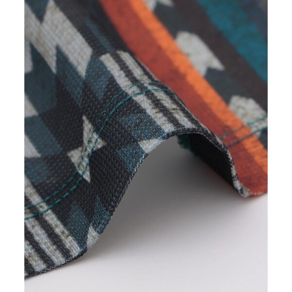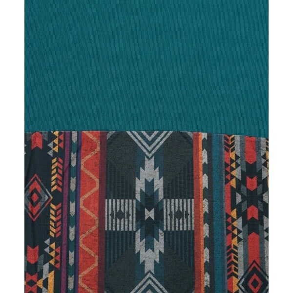 ニット見えする柔らかなカットソーとナバホ族の織るラグ柄のジャージー素材を組み合わせました。