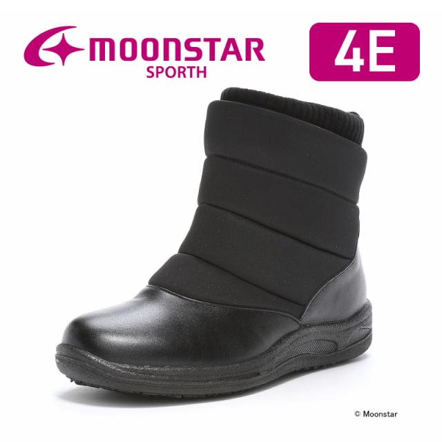 送料無料 ムーンスター スポルス レディース スニーカー ウィンターブーツ 日本製 革靴 SP2711NSR ブラック 幅広4E 透湿防水 防滑 ナノスペラン シューズ 防水 ブーツタイプ スノーブーツ