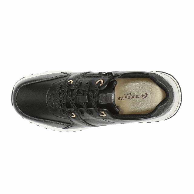 送料無料 ムーンスター スポルス レディース スニーカー 革靴 SP0800 ブラック 外反母趾 衝撃吸収 撥水 ファスナー