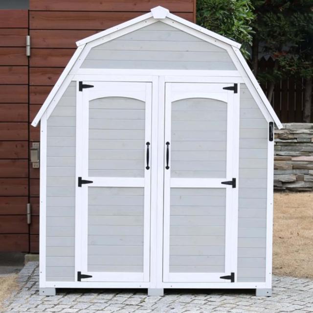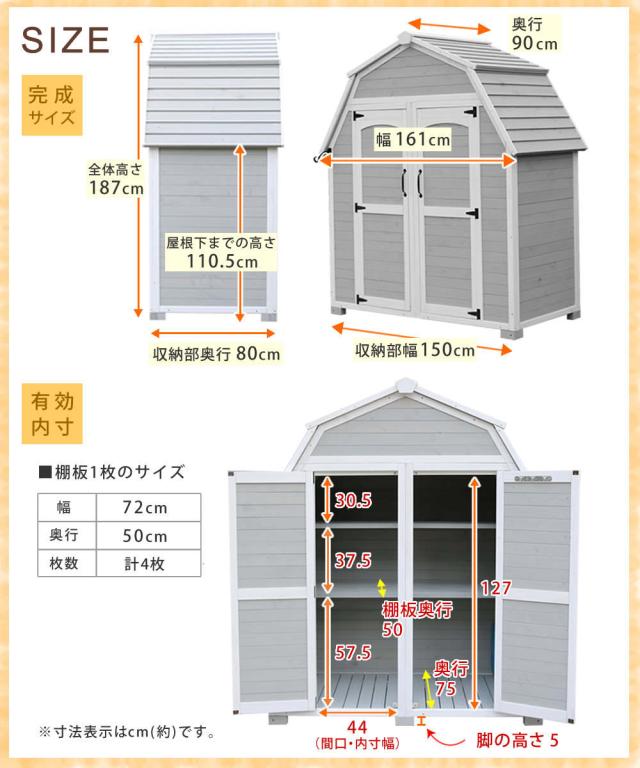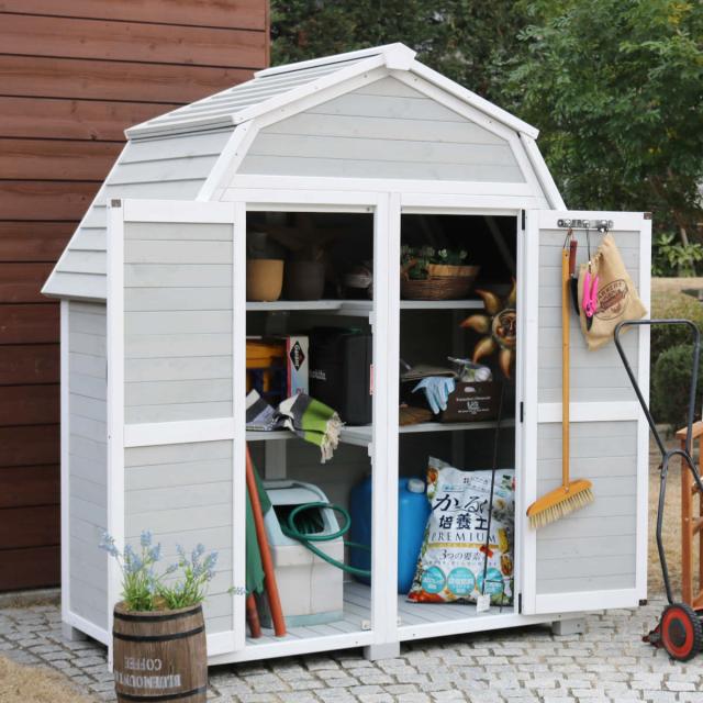 物置 ギャンブレル ルーフ 木製収納庫 ( 木製 倉庫 大型 屋外 屋外物置 約 幅 161 cm 木製物置 ベランダ 物置き 収納 ラック おしゃれ 収納棚 天然木 ガーデン ガレージ 庭用品 マグネット扉 ストッカー ガーデンストッカー )