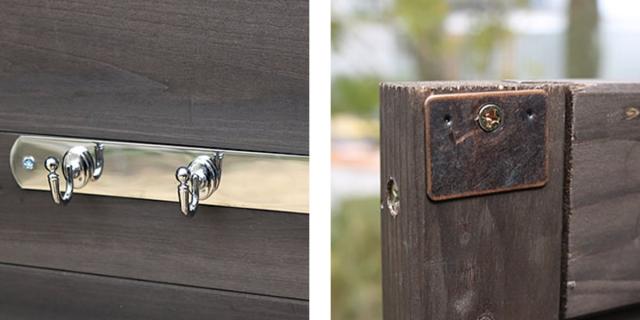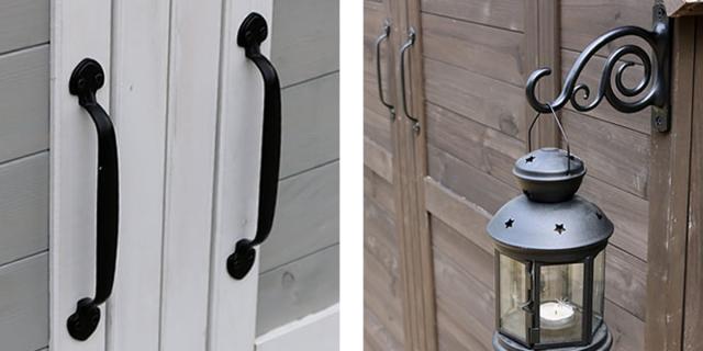 | アンティーク調の取っ手 ブラックの取っ手が程よいアクセントになっています。 | ランタンフック付き ランタンを掛けるフック付きです。 ※ランタンは付属していません |