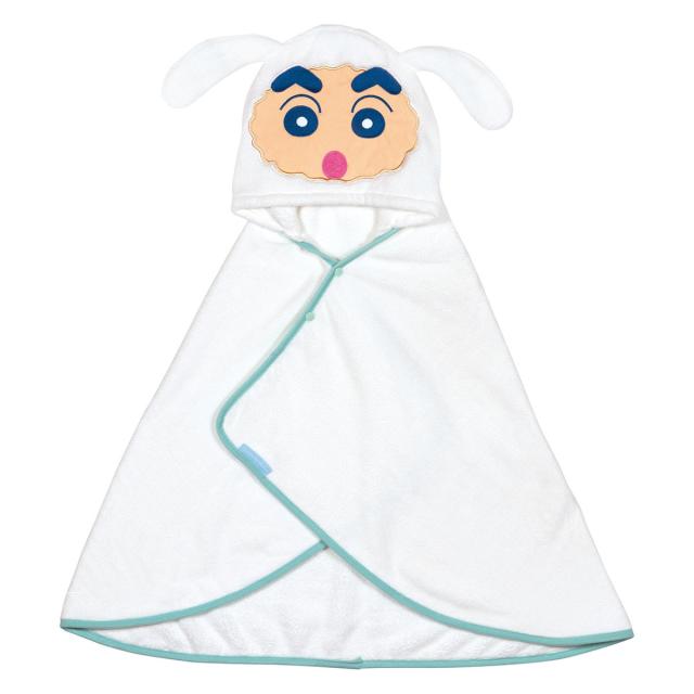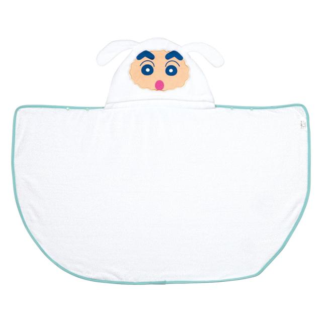 タオル 吸水速乾フード付き バスポンチョ しんちゃん×シロ ( バスタオル 湯上り 吸水 速乾 お風呂 キッズ クレヨンしんちゃん シロ 湯上りタオル マイクロファイバー フード付 ポンチョ ホワイト )