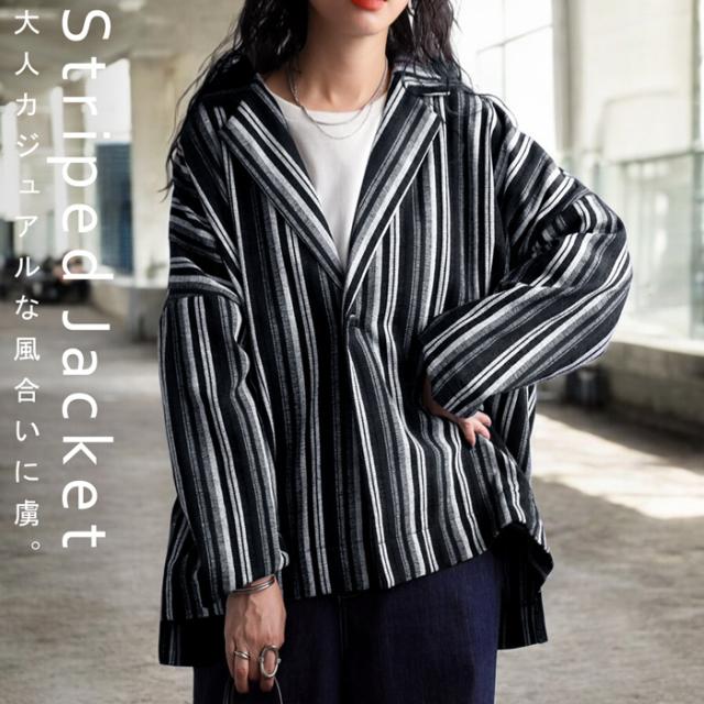 キレイめからカジュアルな場面まで、幅広く着回せるストライプ柄のジャケット。