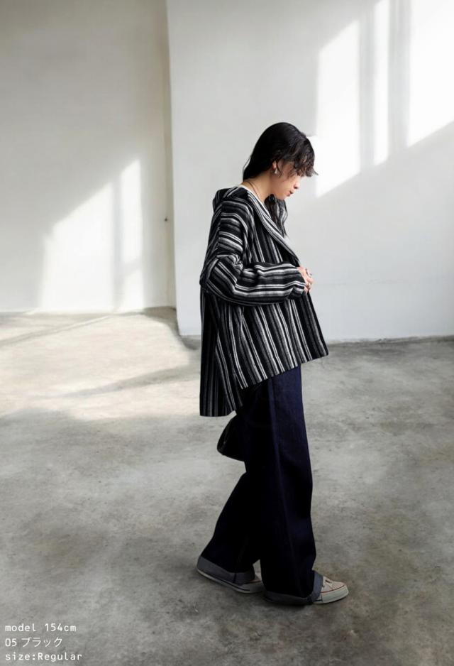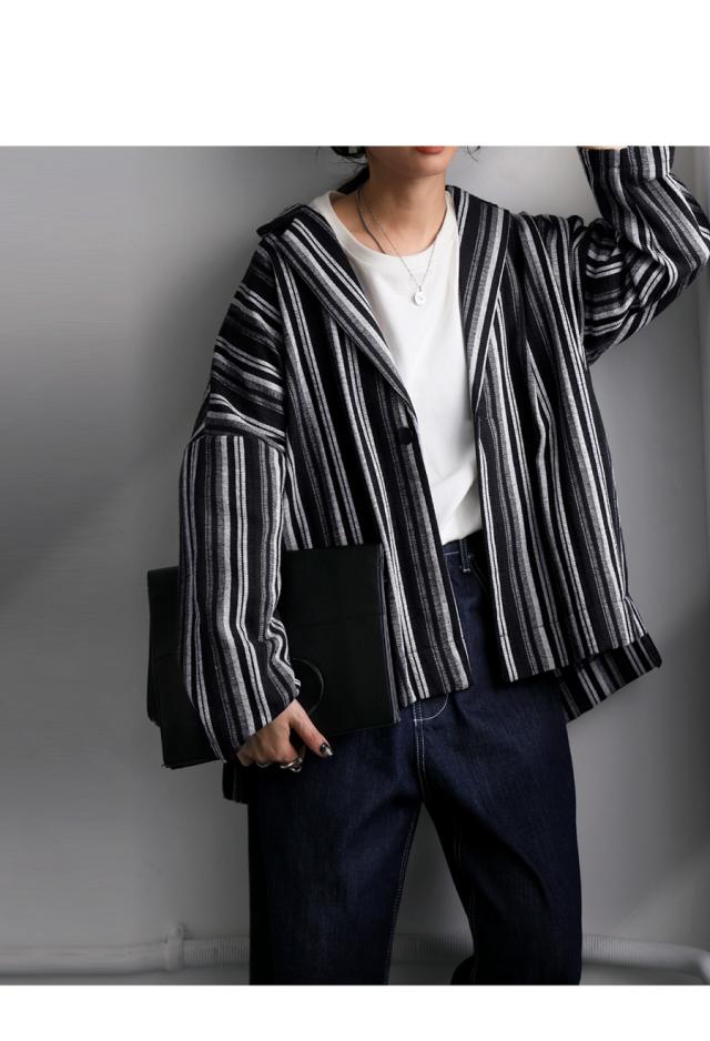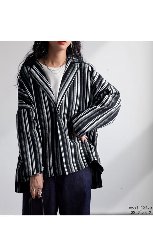 zy-00115 アウター 羽織り 長袖 セットアップ ストライプ柄 柄ジャケット 柄 テーラード 前開き ゆったり サイズ展開 モード スタイリッシュ 体型カバー 着痩せ 大きめ ユニセックス