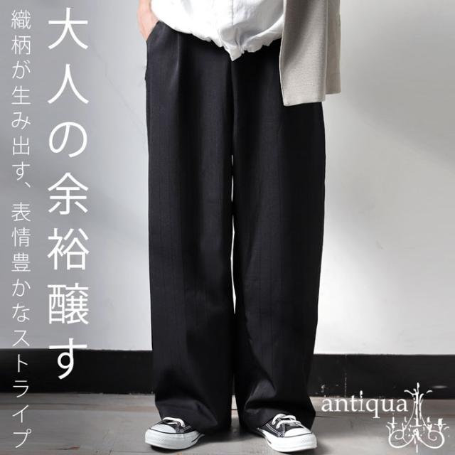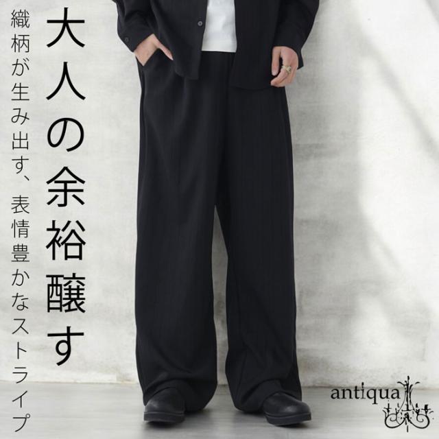 【検索ワード】マルチストライプパンツ パンツ メンズ ボトムス ロング セットアップ 織柄 ストライプ シンプル ストレート ワイドストレート ワイド ゆったり 長ズボン 高級感 タック タックパンツ ウエストゴム 綿混 コットン イージーパンツ リラクシー 楽ちん ラフ ユニセックス 男性 男 かっこいい カッコイイ カジュアル antiqua treecafe アンティカ ツリーカフェ メンズファッション トレンド コーディネート 通販 ブランド 春 夏 秋 冬 オールシーズン あんてぃか ブラック 黒