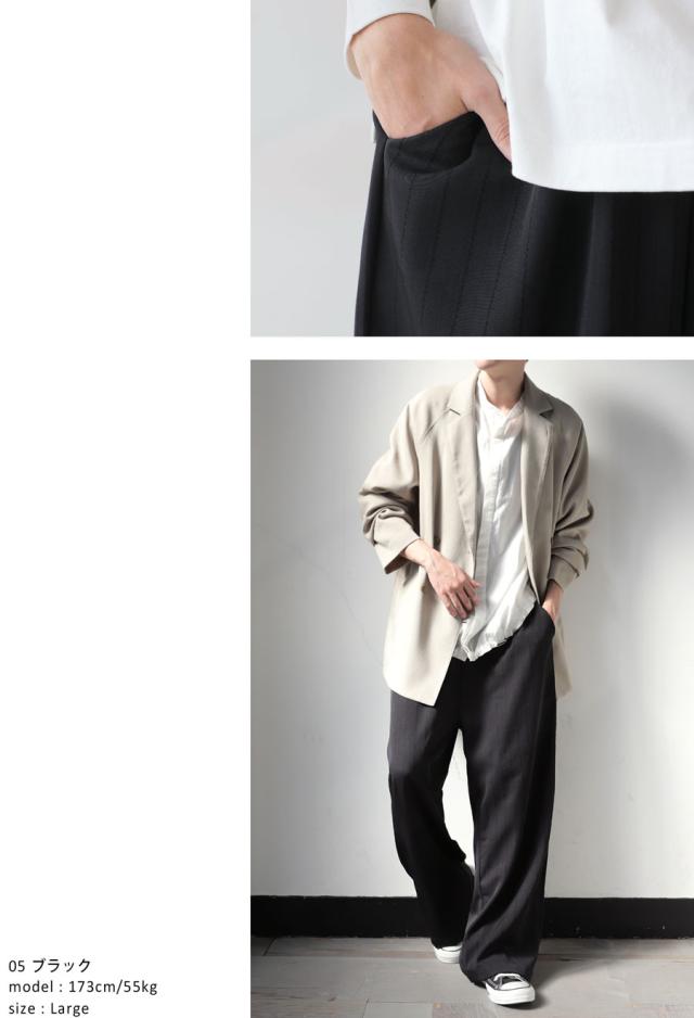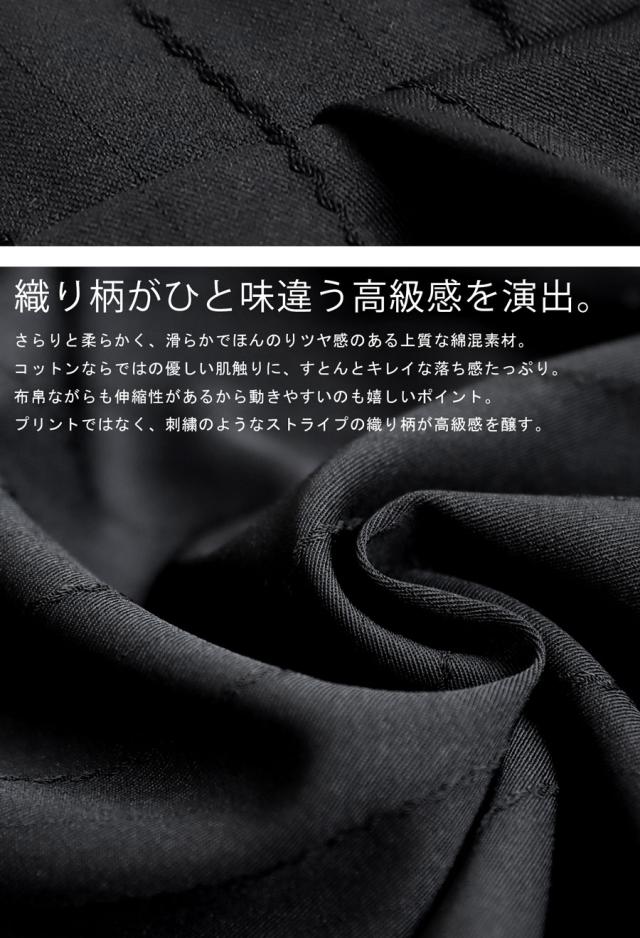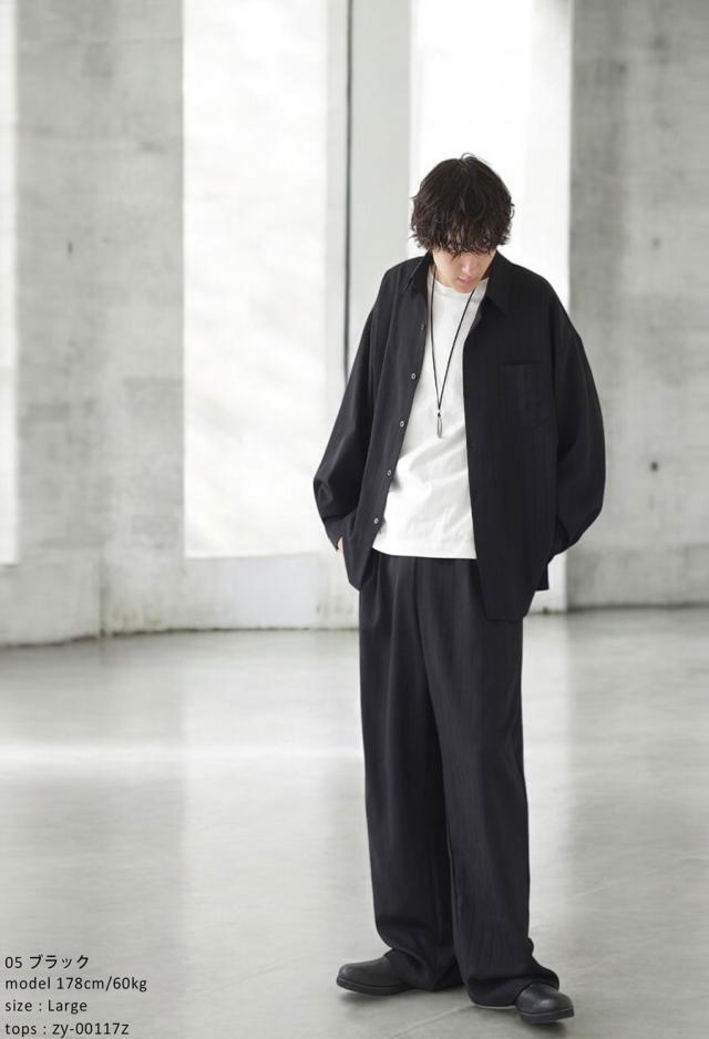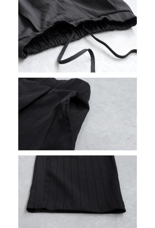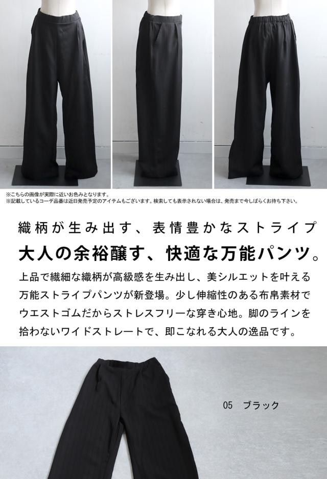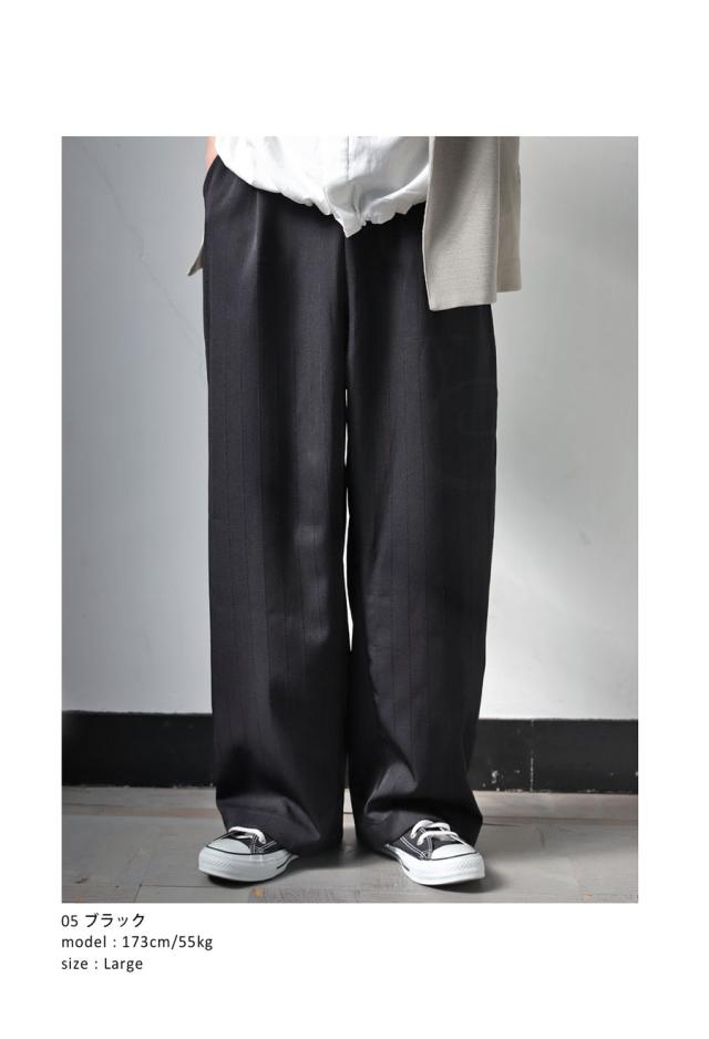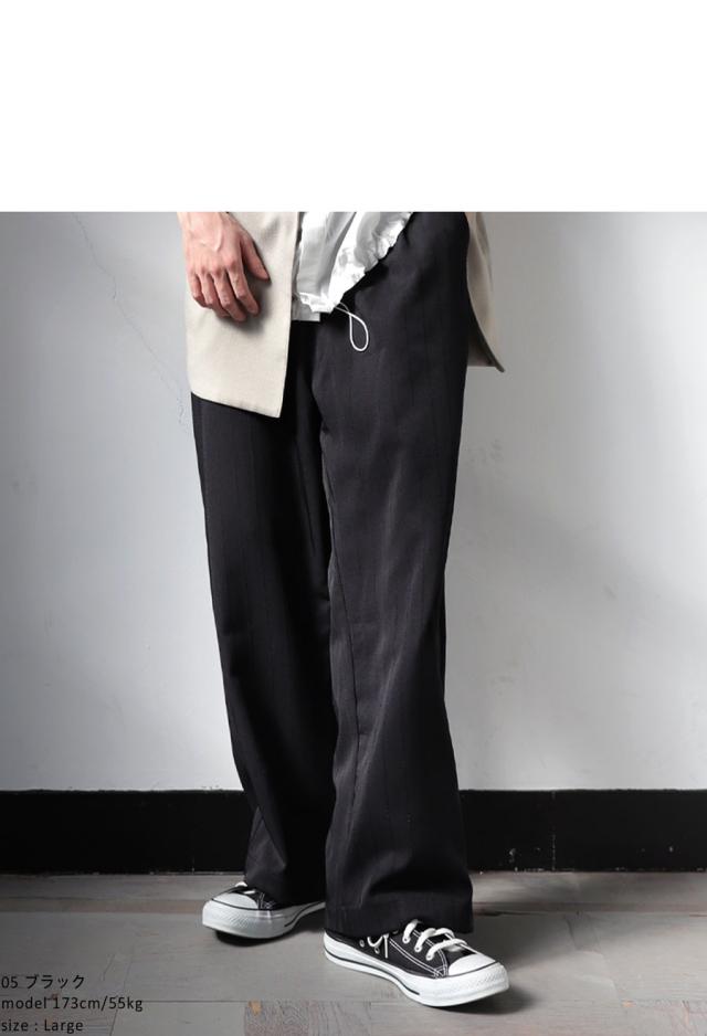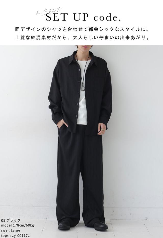 zy-00116z ロング セットアップ 織柄 ストライプ シンプル ストレート ワイドストレート ワイド ゆったり 長ズボン 高級感 タック タックパンツ ウエストゴム 綿混 コットン リラクシー