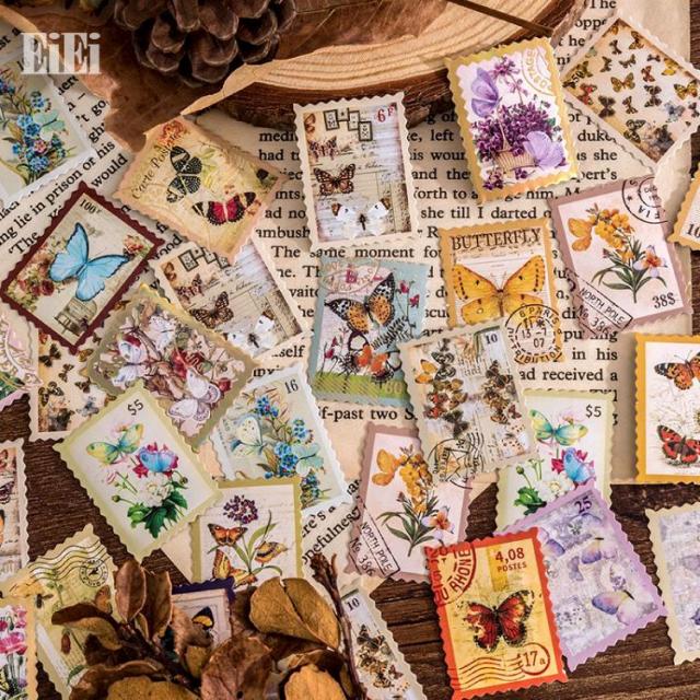 金箔押し 海外シール 切手 スタンプ シール 海外ステッカー コラージュ素材 フレークシール 45枚30柄 箔押し コラージュ 素材 箱入り 手帳デコ デコシール デコレーション 素材 封緘シール ジャンクジャーナル 花 フラワー 蝶 宇宙 惑星 広告 英語 英字 チケット柄