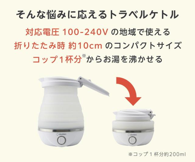 dretec トラベルケトル 0.6L PO-168 ドリテック 大きさ約1/2に 折りたためる トラベルケトル 600ml PO-168WT 折りたたみケトル 200mlからお湯を沸かせる 折り畳み 電気ケトル ![]() ![]() ![]() ![]() ![]() ![]() ![]() ![]() ![]() ![]() | ||||