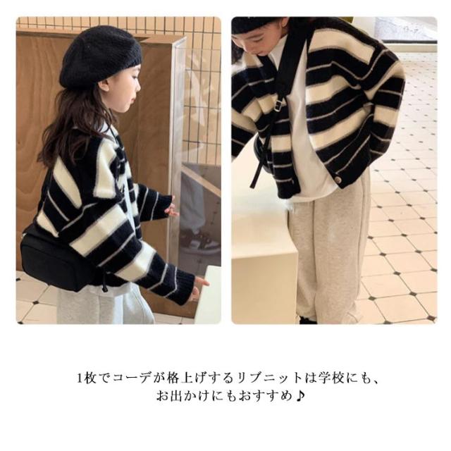 キッズ服 ニットパーカー アウター女の子 男の子 服 春秋 冬 長袖 ボーダー柄 小学生 子供服 ニットカーディガン カーディガン 防寒 おしゃれ カジュアル 冬服 キッズ ベビー アウター 通園 通学 ギフト プレゼント 送料無料