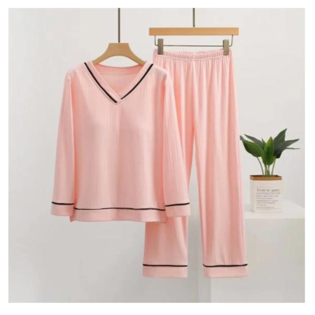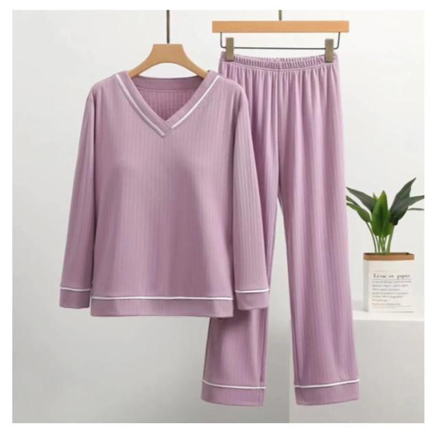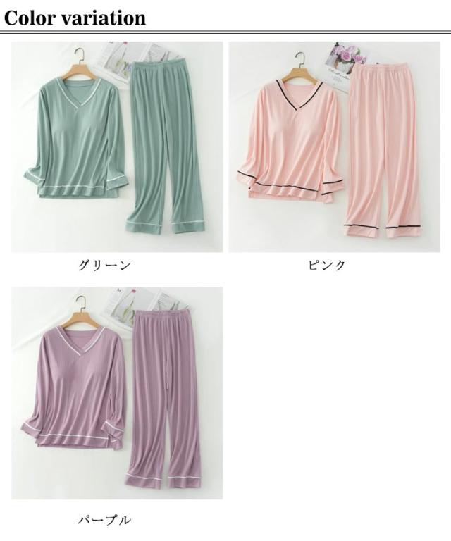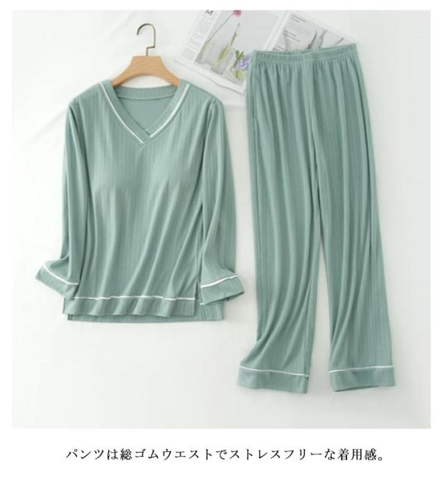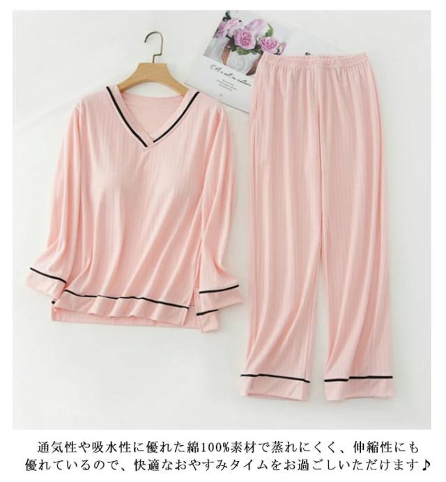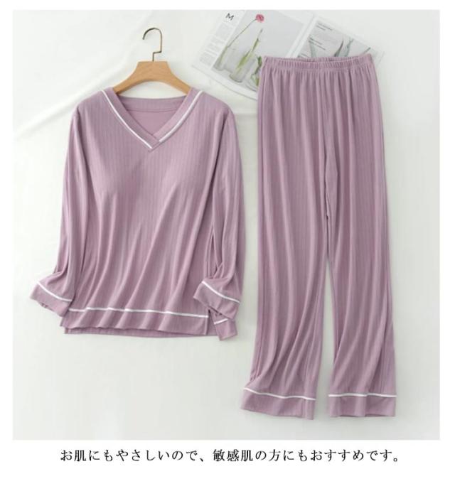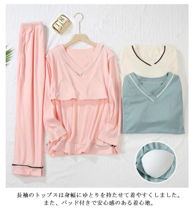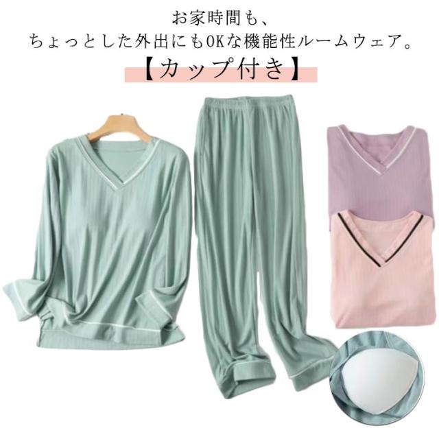 カップ付き パジャマ 上下セット 長袖 プルオーバー ロングパンツ レディース 婦人 秋冬 ルームウェア セットアップ 長袖 パッド 長ズボン 部屋着 寝巻 無地 シンプル パイピング おしゃれ 100%綿 コットン 30代 40代 50代 60代 70代 母の日 敬老の日 プレゼント 【送無】