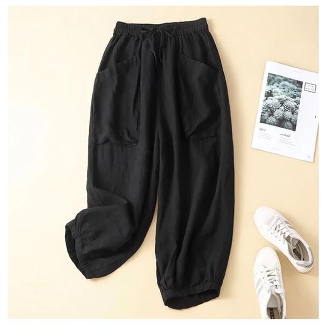 バルーンパンツ レディース 春 夏 綿麻風 リネン風 リネンパンツ レディース ハロンパンツ サルエルパンツ ロング丈パンツ アンクルパンツ 春 夏 バルーンパンツ ワイドパンツ イージーパンツ ロングパンツ ウエストゴム ウェストリボン ボトムス 九分丈 綿麻風 通気性