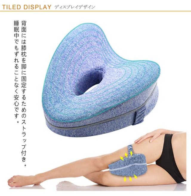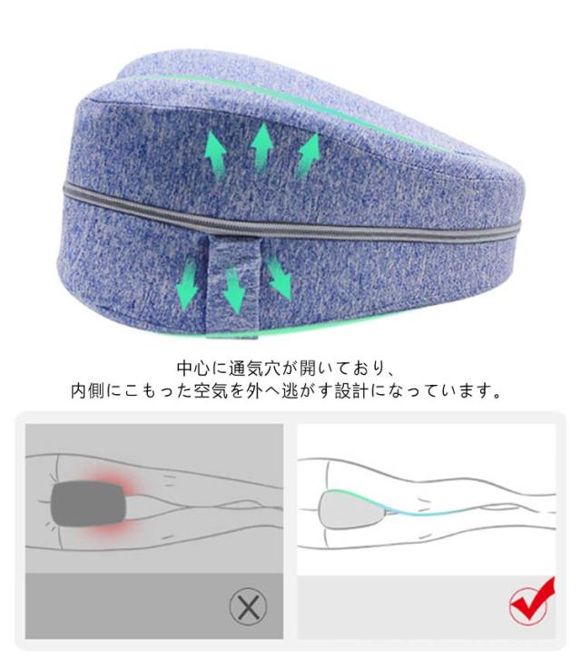 | 【膝枕】【足に沿ったカーブ形状】【9color】 背面には膝枕を脚に固定するためのストラップ付き。睡眠中でもずれることなく安心です。 中心に通気穴が開いており、内側にこもった空気を外へ逃がす設計になっています。 カバーはチャックで着脱可能なため、中の枕を取り出してカバーだけ洗うことができ、衛生的にご使用いただけます。 横向きの姿勢で寝る際に使用します。片方の足にストラップを通して膝枕を固定し、両足で挟んで使用します。 足の丸みに沿ったカーブ形状で接触面積を増やし、かかる圧力を分散します。 内部にはやわらかい低反発ポリウレタンを使用。足への負担を軽減します。 また外側カバーは肌触りが良いためストレス無く快適に眠ることができます。 | |