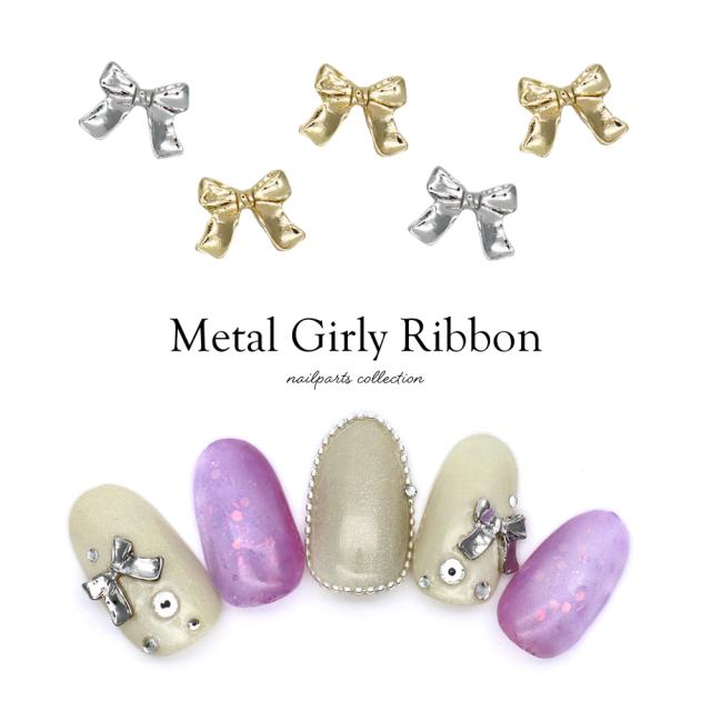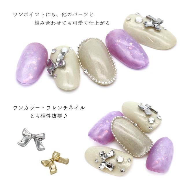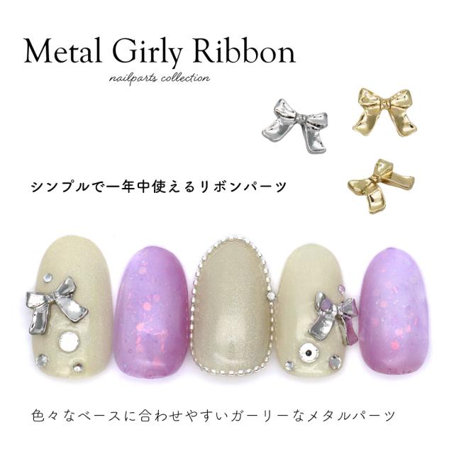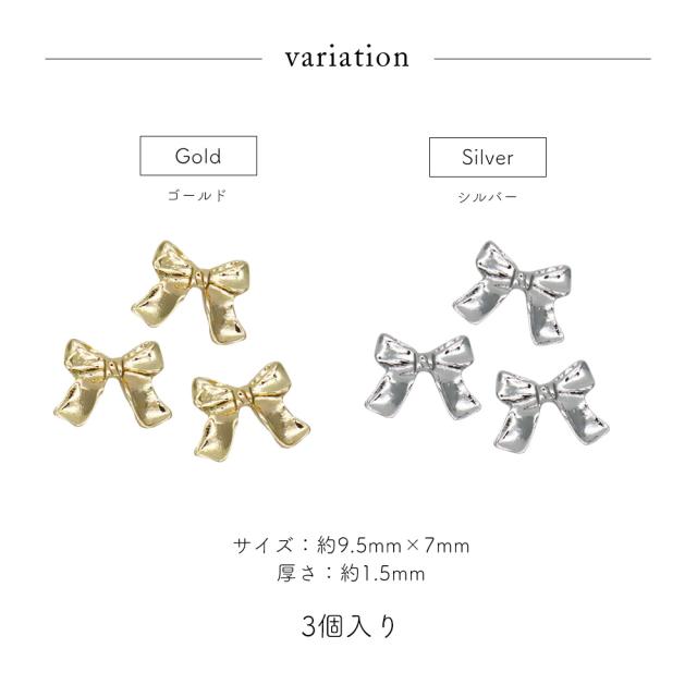 ネイルパーツ メタルガーリーリボンパーツ [ゴールド 金/シルバー 銀] 全2色 3個入り